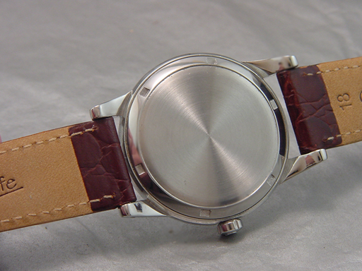 Here is a hard to find large, first generation an Omega Seamaster in all stainless. Beautiful 2-Tone, smoke gray and satin silver dial has been professionally restored. The all 36 mm Stainless Steel, screw back case is quite nice with only a few small signs of use on case. Case reference number is 2493-6. Measurements are 36.2 mm diameter, exclusive of crown, and 46 mm in overall length. The reliable Omega Caliber 332 powers this Seamaster. This original and robust movement is a 17 Jewel, Automatic that bears serial number 12157429 from the year 1950. This Seamaster has installed a new 18 mm genuine leather band.Signed 4 Times; Dial, Movement, Case Back, and Crown.