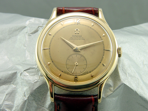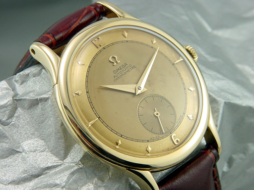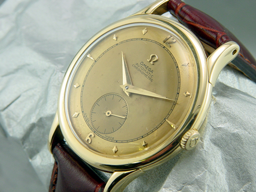 EMagnificent Omega Centenary in solid 18K gold. Beautiful original finish dial. Accenting the markers and arabic style numerals are the original dauphine style, hands. The all 18K gold case is quite nice with a few signs of use. Case measurements are 34.8 mm diameter, exclusive of crown, and 42.7 mm in overall length. The reliable Omega Caliber 30.10 is under the hood of this nice watch. This original and robust movement is a 17 Jewel, Automatic that bears serial number 10760235. It is equipped with the highly polished ratchet and crown wheels. This Centenary has installed a nice Croco band and genuine 18K Omega buckle.Signed 4 Times; Dial, Movement, Case Back , and Crown.